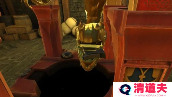 9、将防拆螺丝放入右侧龙身的凹槽中,顺时针旋转内部的圆环,拖拽防拆螺丝,点击龙头,得到机关部件。