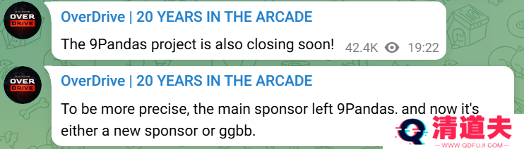 OD:“9 Pandas项目即将结束!更确切地说,主要赞助商已经离开了他们。现在要么找到新的赞助商,要么就只能再见了。”