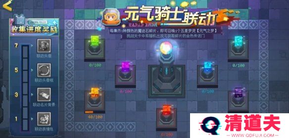 3、每集齐1种颜色的魔法石碎片,即可召唤1个五星梦灵“元气之梦”,挑战关卡中将随机出现可获取碎片的金色传送门。