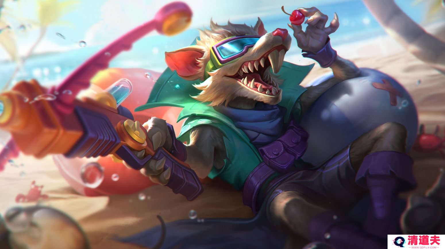 直播吧4月16日讯 英雄联盟官方公布了新一期灵魂莲华系列皮肤测试服预览,以及单独发布的泳池派对 图奇原画以及游戏内载入界面预览。