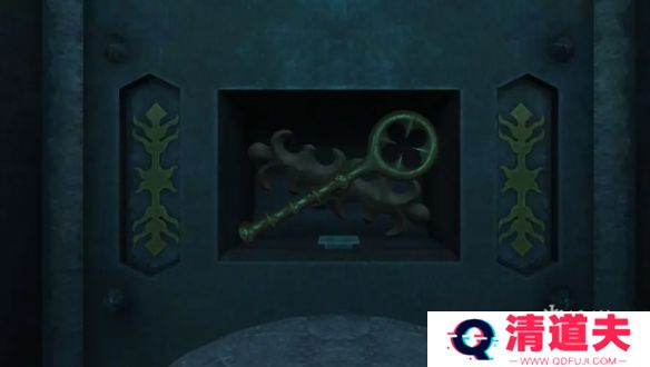 5、根据棺材上的提示,解开机关,得到形状古怪的钥匙和木头装饰,将木头装饰插入机关柜上的凹槽中,柜门上的三个图案重合即为正确图案。