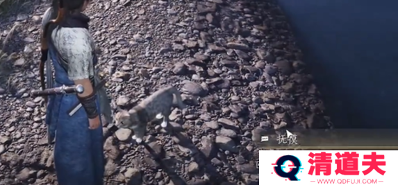 5、第四个:往河边去就能看到第四只猫咪,点击【抚摸】即可。