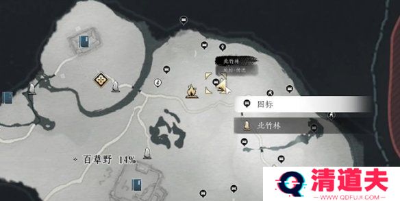 1、第一个:首先前往图中北竹林的置,达到后一直往北走就能看到第一个猫咪。