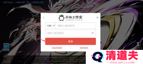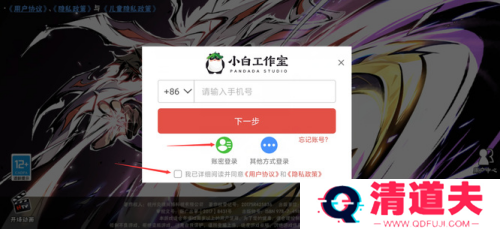 2、在随后打开的窗口里,阅读并同意位于页脚的用户协议,随后在页面右侧选择账密登录。