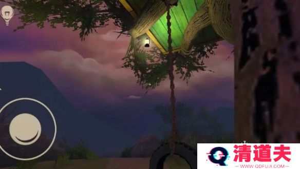 3、第三个:位于树屋的秋千下的树干上绑着一个,多荡几下秋千可以直接拿到。